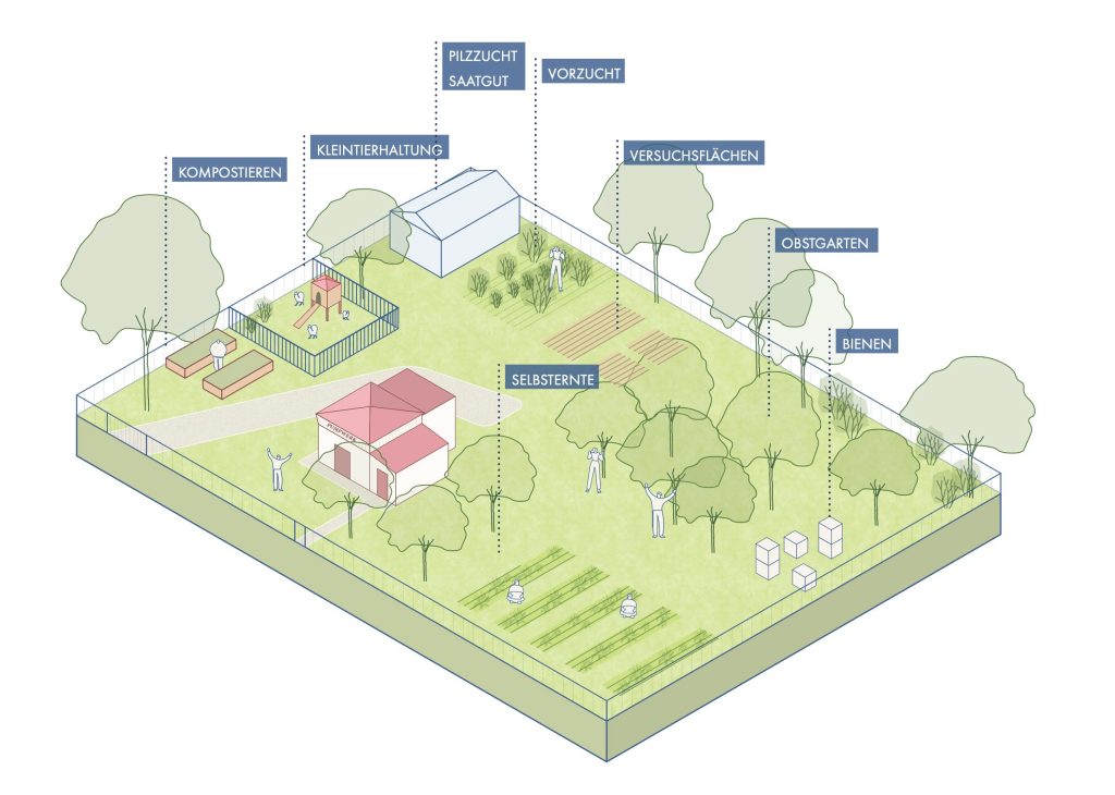 Ein Grundstück der Genossenschaft, das alte Pumpwerk in Essling, wird für neue gemeinschaftliche Nutzungen weiterentwickelt: Hier werden Stauden und Sträucher für die vorgezogen, Weiterbildung zu Gartenthemen angeboten und Beete zur Selbstversorgung angelegt.